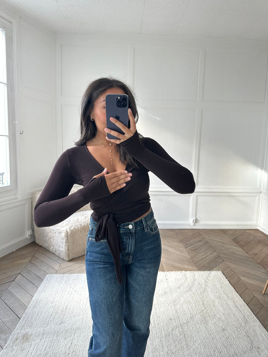 Top cache-coeur à nouer - marron