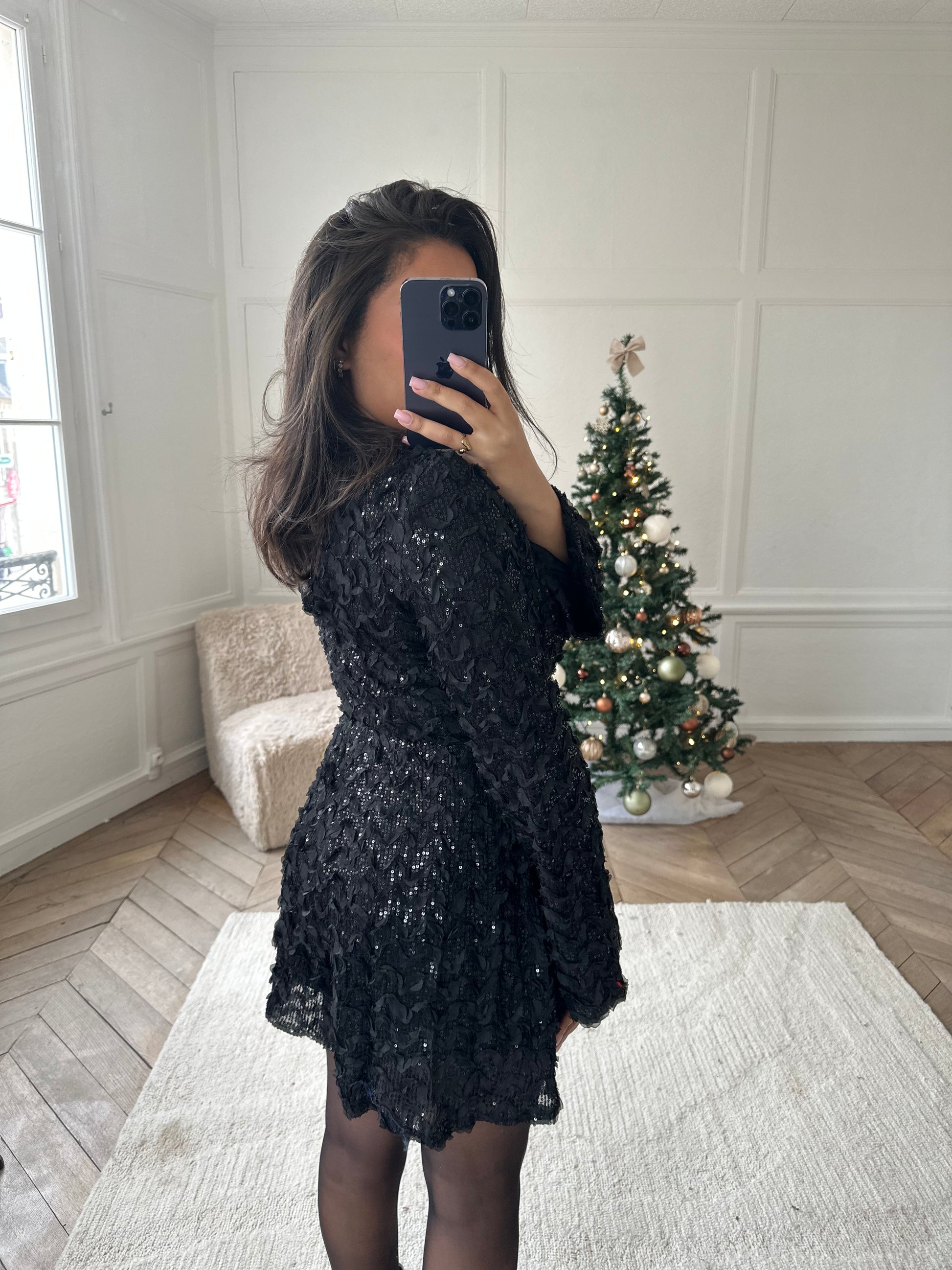 Faites tourner les têtes avec notre combi-short  à sequins texturés, une pièce spectaculaire et résolument glamour. Conçue dans un tissu richement travaillé, elle est entièrement recouverte de sequins en relief qui créent un effet 3D unique, apportant profondeur, éclat et élégance à chaque mouvement.