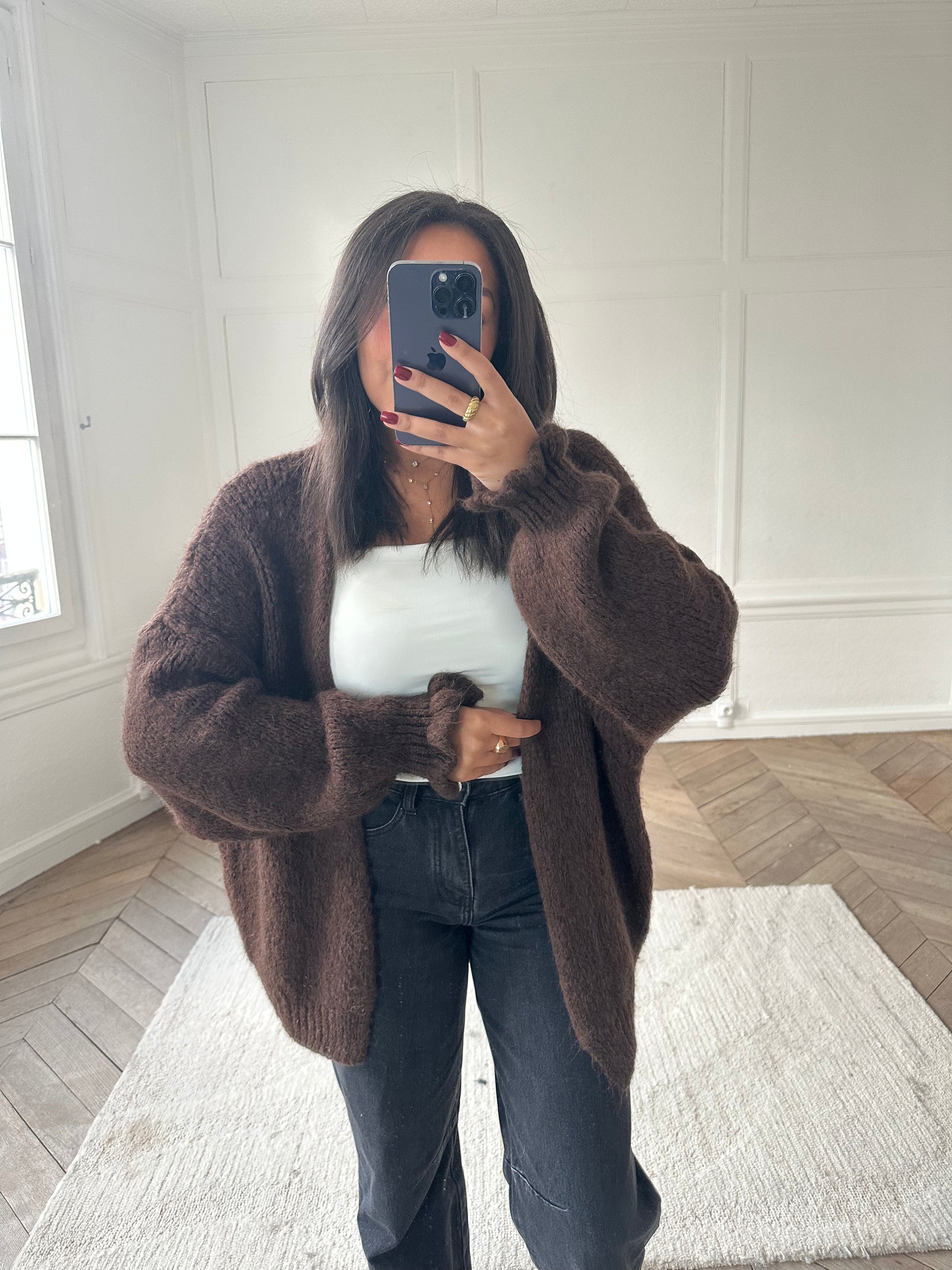 Gilet oversize cocooning avec détails aux manches. Existe en plusieurs coloris.
