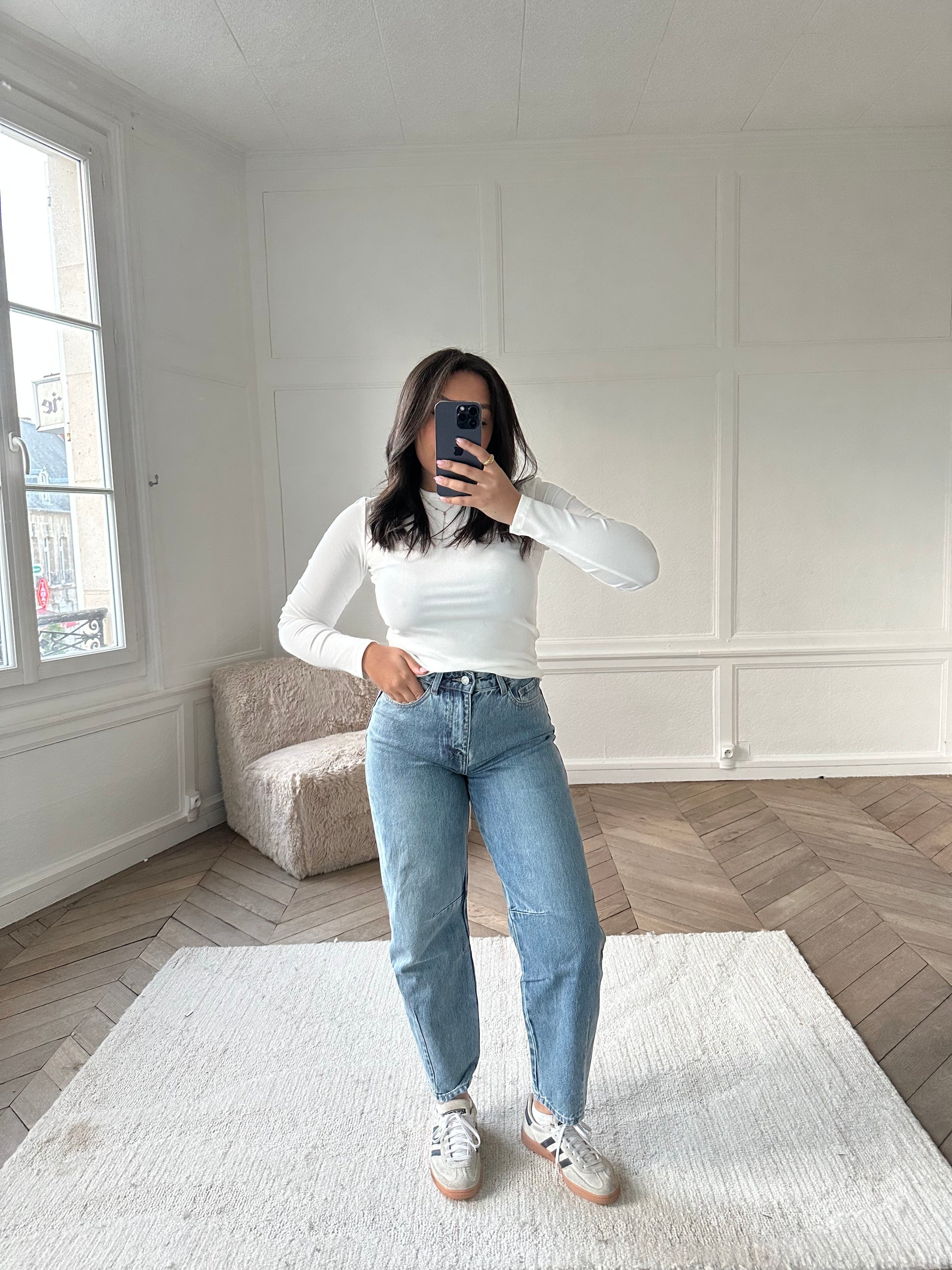 Le jean coupe barrel se situe à mi-chemin entre le côté décontracté du boyfriend et le côté architectural du pantalon de tailleur, ce jean brise les codes et apporte une silhouette audacieuse et contemporaine.